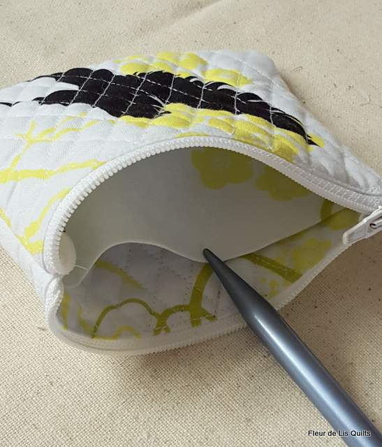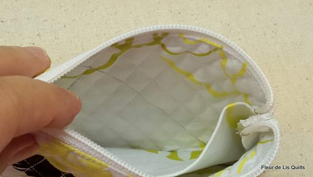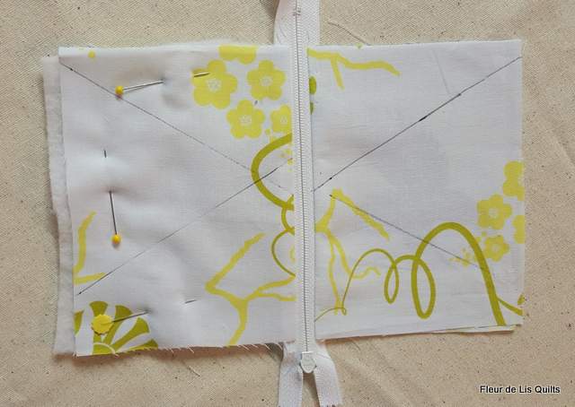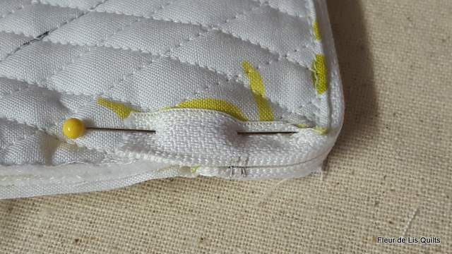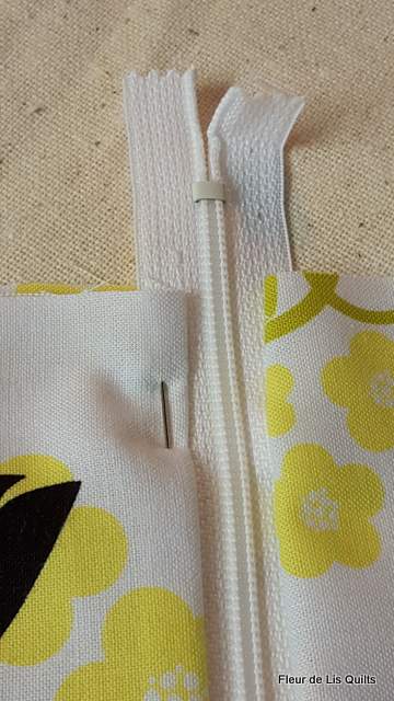 4. After I had one side of the zipper sewn in, I flipped the fabric over and pinned it down. I could have top-stitched at this time but, knowing that I planned to quilt the fabric, I skipped this step for now.