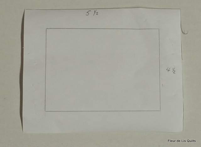 1. PATTERN and CUTTING I used the pattern that I’d made for my sister’s wallet. To create the pattern, traced around a credit card, then added 3/4 inch all around. I wanted to add seam allowance and a little extra so that it would be easy to put the cards in or take them out. The pattern is 5 1/2″ w X 4 1/2 h (The purse is oriented in a landscape design.)