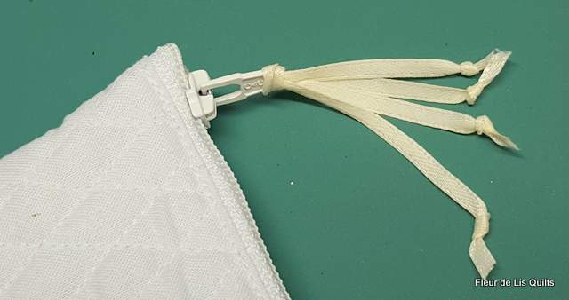 Slip the folded end into the hole in the zipper pull. Now push the knotted ends through the loop and pull tightly.
