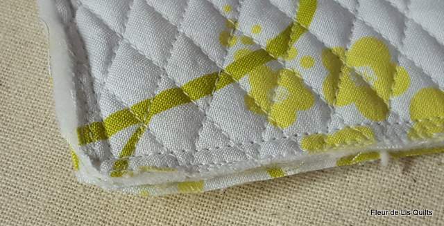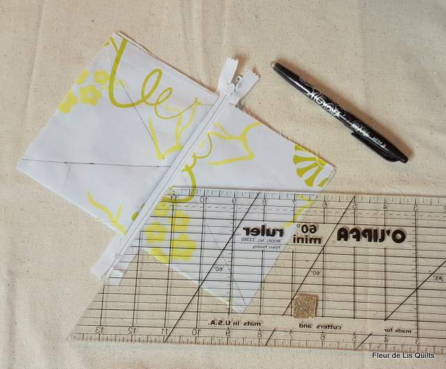 6. MARKING THE QUILTING Before adding the batting, decide how you will quilt the purse. If you choose a stipple or other design that does not need lines, skip this part. I chose to quilt in close diagonal lines, which needed to be drawn in with a ruler and Frixon pen so that I could achieve somewhat straight lines.