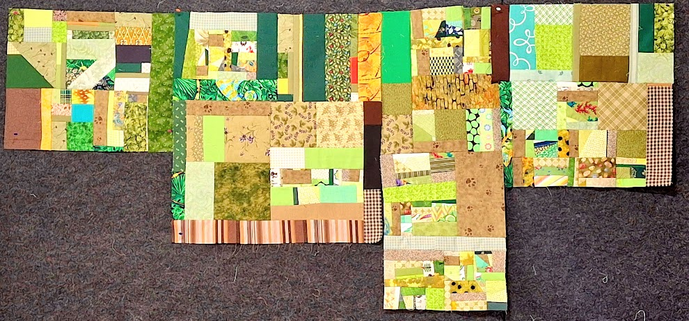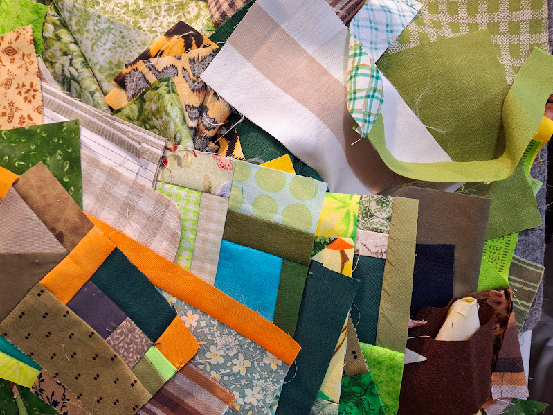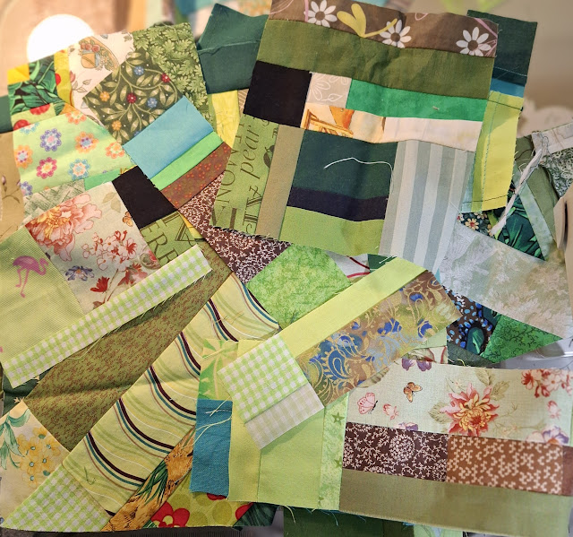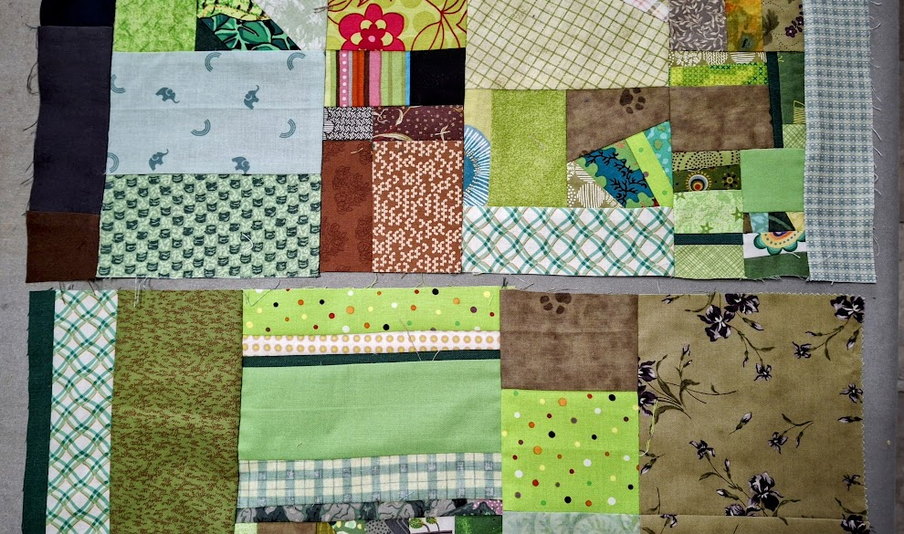 While digging through the basket of green scraps, I discovered these already sewn small pieces!