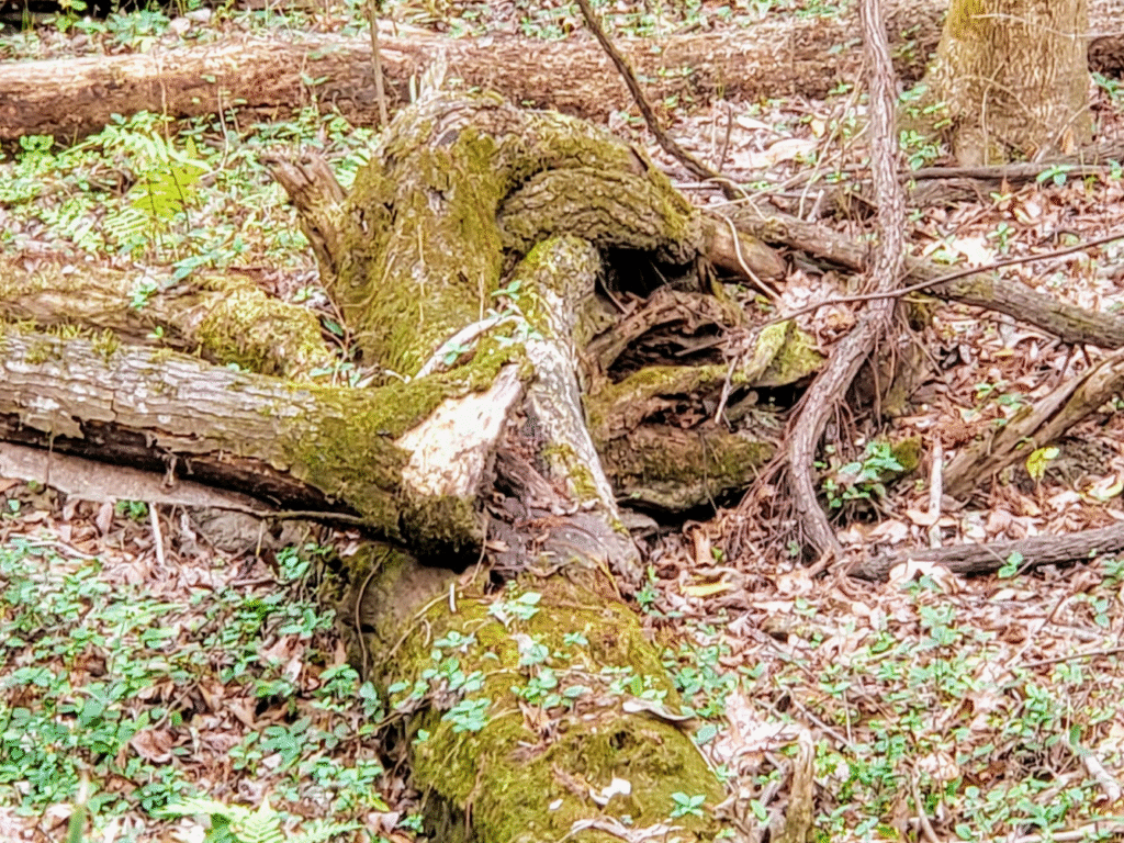 We took a walk one day in a little wooded area that was wet and swampy. Many of the trees had fallen down years earlier. I was fascinated by the moss and lichen. Naturally, I took at least 50 photos of rotten trees, moss, lichen, broken branches. One tree had broken into several pieces and fallen in a strangely haphazard way. I stopped Richard and had him help me figure out how the pieces fit together. I needed to know how it must have stood straight despite the way it lay on the ground. It took us several minutes, because the pieces had to fit like a 3D puzzle. I had to flip and turn them in my head so that the broken edges matched. Now, why? Why? Because when I have a question, I need the answer. In the answer lies the inspiration!