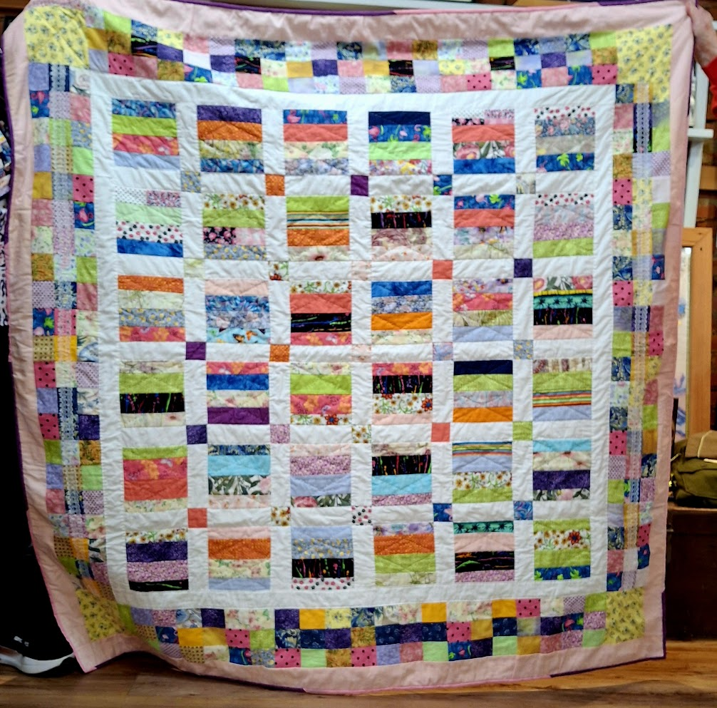 The Cotton Quilters met on Monday. Show and Share ideas can run rampant because we’re becoming a big crowd. We started the morning with a small project: making key wristbands. Blandina, one of our quiet, demure members, taught the project. (I learned that I definitely need to practice being a quiet student.)