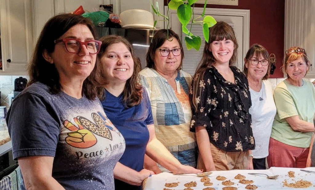 Pralines are made! Celebratory photo of (left to right) Lee, Amanda, Laura (sister) and Riley, her daughter, and Angie and Sid (sisters).