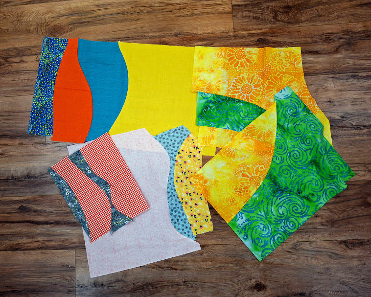 Monday morning, I taught a lesson on improv curves. We had only a few hours, but my four students seemed to have a great time, and everyone walked away able to sew S curves.