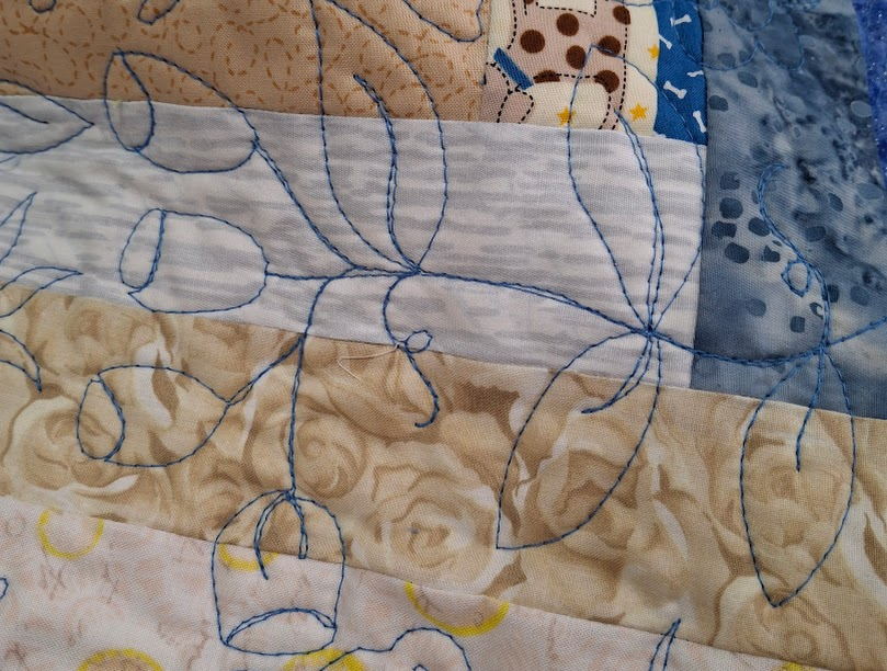 That’s right! A finish! I’ve worked on this little blue and white log cabin quilt for a few weeks. Okay, possibly longer. I wrote about it here. At that time, I had no clue as to a name. But it needs a name, right? Yes, my quilts must have names. So, I worked on that for a minute while quilting it and decided on Emmy Blue’s Quilt. It is now completely finished: bound and labeled! Yay!
