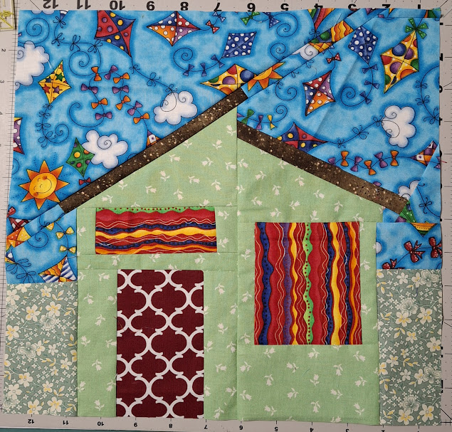 Anyway, they built their house in the same general style, and pulled it off beautifully. Now that it’s finished, I decided to build my own Wright-inspired house in fabric! Why not? I am providing houses to the Cotton Quilters’ Guild and need to come up with ideas. I’m avoiding using other patterns for this project. Maybe I’ll use them for something in the future. Who knows?