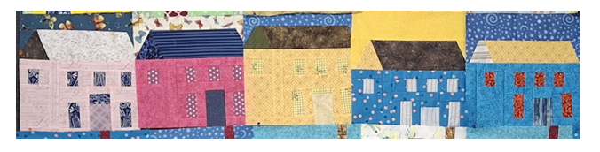 This month I will present the final house pattern to our guild. This pattern is easy, which means it’s a quick sew. I finished the five I want for the quilt in just a few days of “building.” This week I’m “growing trees.” That’s what I call it, anyway. Thus far, ten trees. Not too bad.