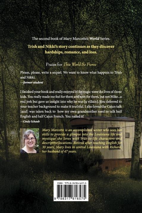 The sequel to This World So Fierce continues the story of Trish and Nikki. Five years ago, Trish and Nikki were healing from tragedy and pain. Now they are forging lives of their own. Suddenly Trish is asking everyone where is Nikki? The biggest question in the second book of the much-anticipated World Series is one Trish cannot believe. How could she have not known for a week about Nikki’s disappearance. And why, five years later, she still hasn’t been found? Though her love for Nash is blossoming, can she leave the restaurant and put him on hold while she focuses on finding Nikki? Meanwhile, can Nikki care for herself and Jake? Unable to justify her relationship with Jason, Nikki soon regrets having ignored the warnings. Can Nikki pull her life together in time? This sequel delivers human outcomes from trauma, rape, and depression while delivering compelling characters, enchanting settings, and true Louisiana mystique.